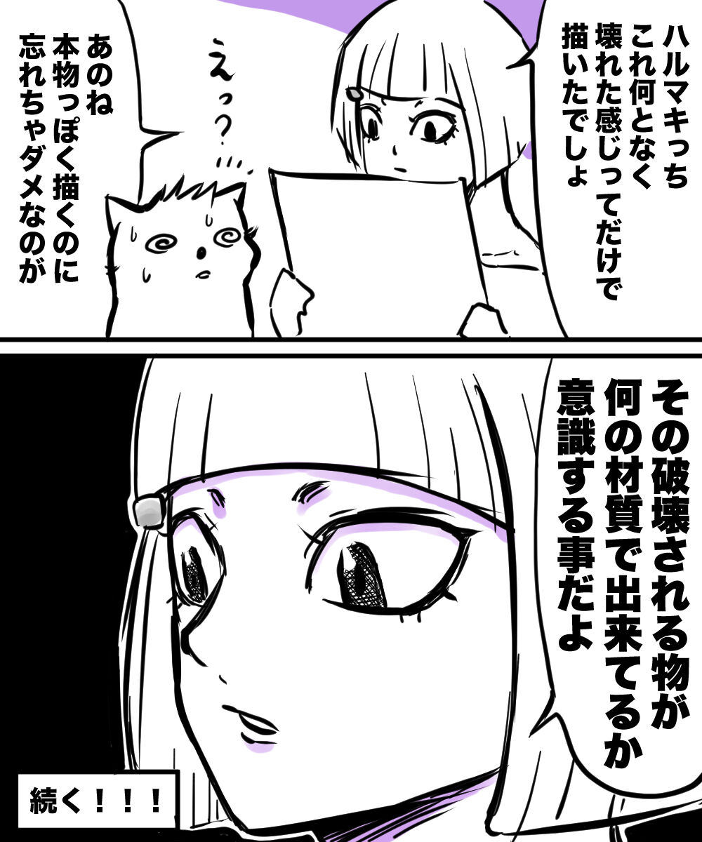 2023年03月15日 破壊描写でテンパった話② 破壊描写で重要な要素「リアリティ」その先生の作風にもよりますがそこがしっかりしてると、例え漫画で嘘の世界が描かれているとしてもその世界が地に足のついたものになりますし、読者にとって没入感が違う気がします。 タグ :#漫画が読めるハッシュタグ#漫画#漫画アシスタント#アシスタント#作画#背景#破壊描写#作画作業 「お気楽マンガ 仕事場編」カテゴリの最新記事 < 前の記事次の記事 > コメント コメントフォーム 名前 コメント 記事の評価 リセット リセット 顔 星 情報を記憶 コメントを投稿する