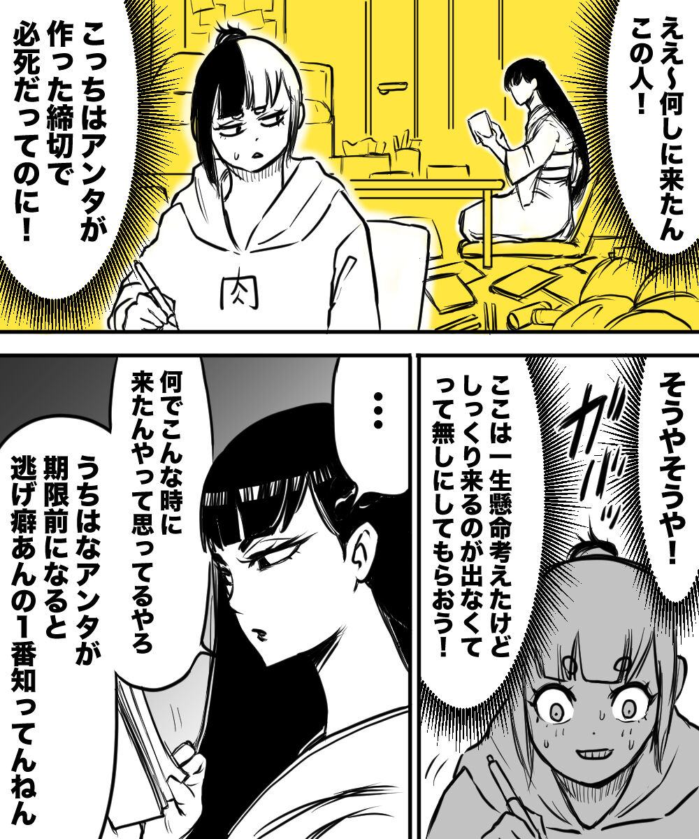 2025年12月27日 1番苦手な相手が担当になった漫画家② タグ :#創作#漫画家#編集者#姉妹 カテゴリなしの他の記事 < 前の記事次の記事 > コメント コメント一覧 トナカイ 2025年12月27日 20:04 ストーリー漫画のよう? 早く続き読ませて〜(^∇^) ハルマキ 2025年12月27日 21:15 >>1 ありがとうございます〜 2ページ単位で描いてるのを続けて載せてる感じですね。 すぐ終わりますよ、すぐ(笑) まき 2025年12月30日 16:14 めっちゃおもろい。 大阪弁? 奈良弁? が刺さります。 ハルマキ 2025年12月30日 18:19 >>3 わ〜い!読んで下さってありがとうございます! 東京生活が長くなっておかしくなった作者の奈良弁です(笑) ラビット愛 2025年12月30日 19:26 えーっ!そんなすぐ終わらんで欲しい! ハルマキ 2025年12月30日 19:44 >>5 わぁ〜読んで下さってありがとうございます! そんなに楽しみにしてくださる方がいたなんて・・・(涙) コメントフォーム 名前 コメント 記事の評価 リセット リセット 顔 星 情報を記憶 コメントを投稿する