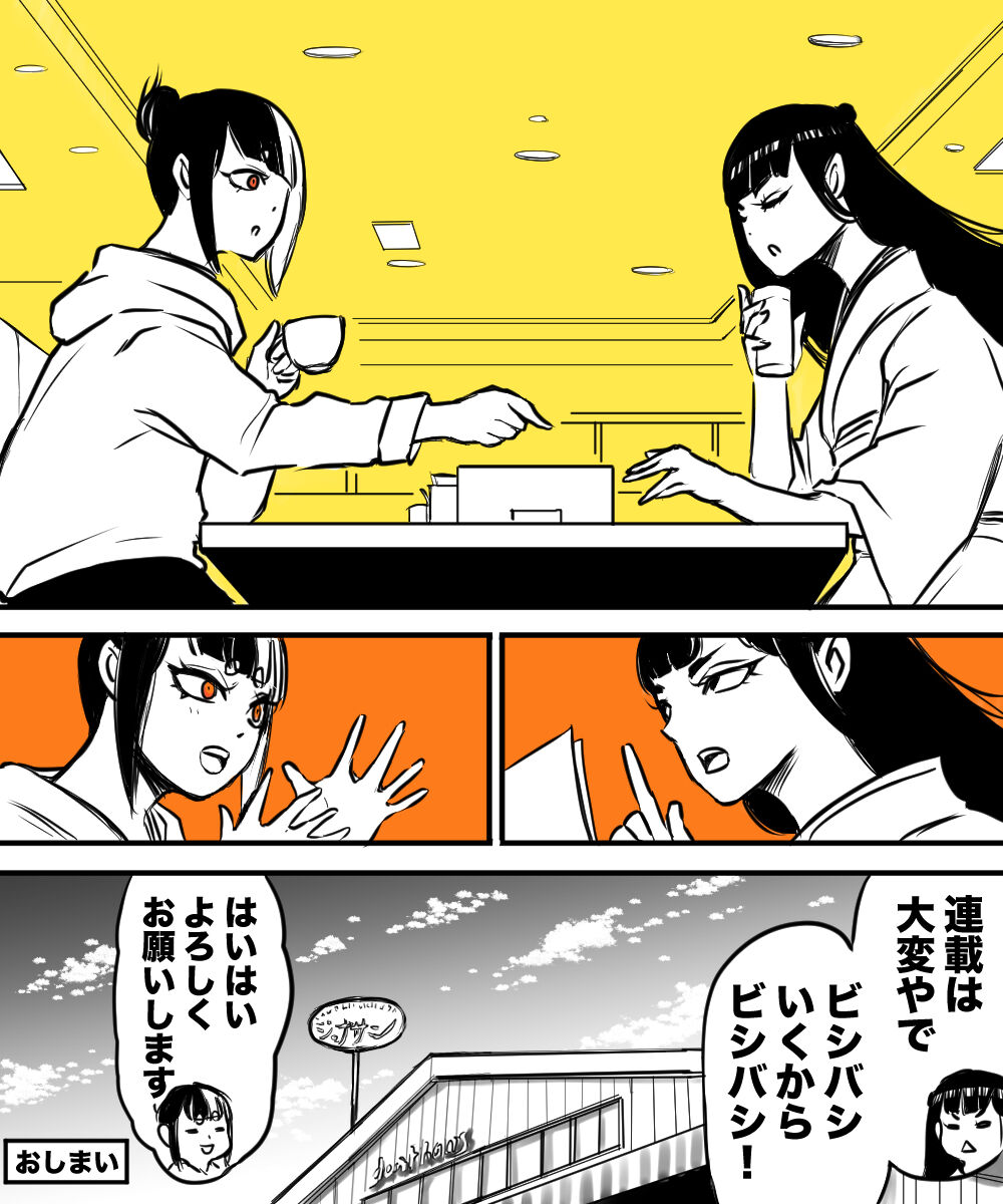 2025年12月31日 1番苦手な相手が担当になった漫画家③ タグ :#創作#漫画家#編集者#姉妹 カテゴリなしの他の記事 < 前の記事 コメント コメント一覧 トナカイ 2026年01月02日 13:29 お姉ちゃんの初恋の話、聞きたいわぁ〜。 ハルマキ 2026年01月02日 13:44 >>1 明けましておめでとうございます。 ねぇ〜聞いてみたいですね〜 まき 2026年01月05日 10:02 明けましておめでとうございます。今年も楽しいお話を待っていますね。 本筋と関係ないですが、編集さんの仕事で和装って業務上動きにくそうで色々と大変そう。 ともあれ、半年後ぐらいに後日談(連載がうまくいったのかいかなかったのかあたり)を読んでみたいです。 ハルマキ 2026年01月05日 16:42 >>3 明けましておめでとうございます!今年もよろしくお願いします〜 ワハハ、確かに絶対動きにくいですよね(笑) 少なくとも僕は和装の編集者さんは会った事ないです。 ありがとうございます、後日談描きたいですね〜 コメントフォーム 名前 コメント 記事の評価 リセット リセット 顔 星 情報を記憶 コメントを投稿する